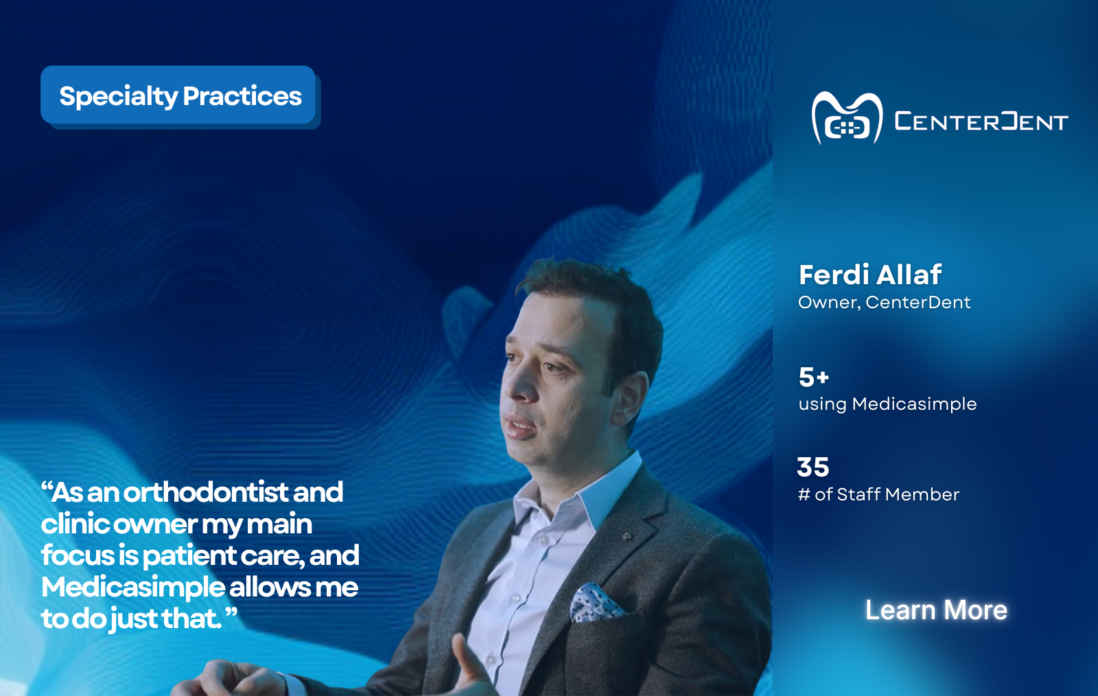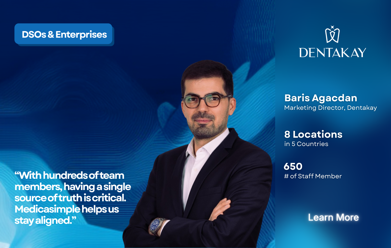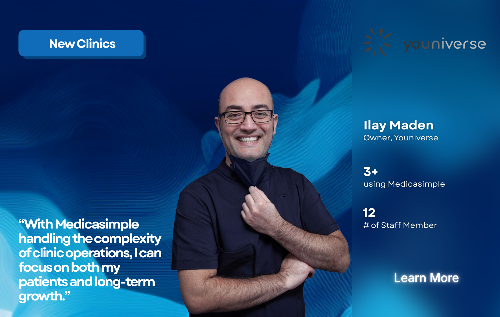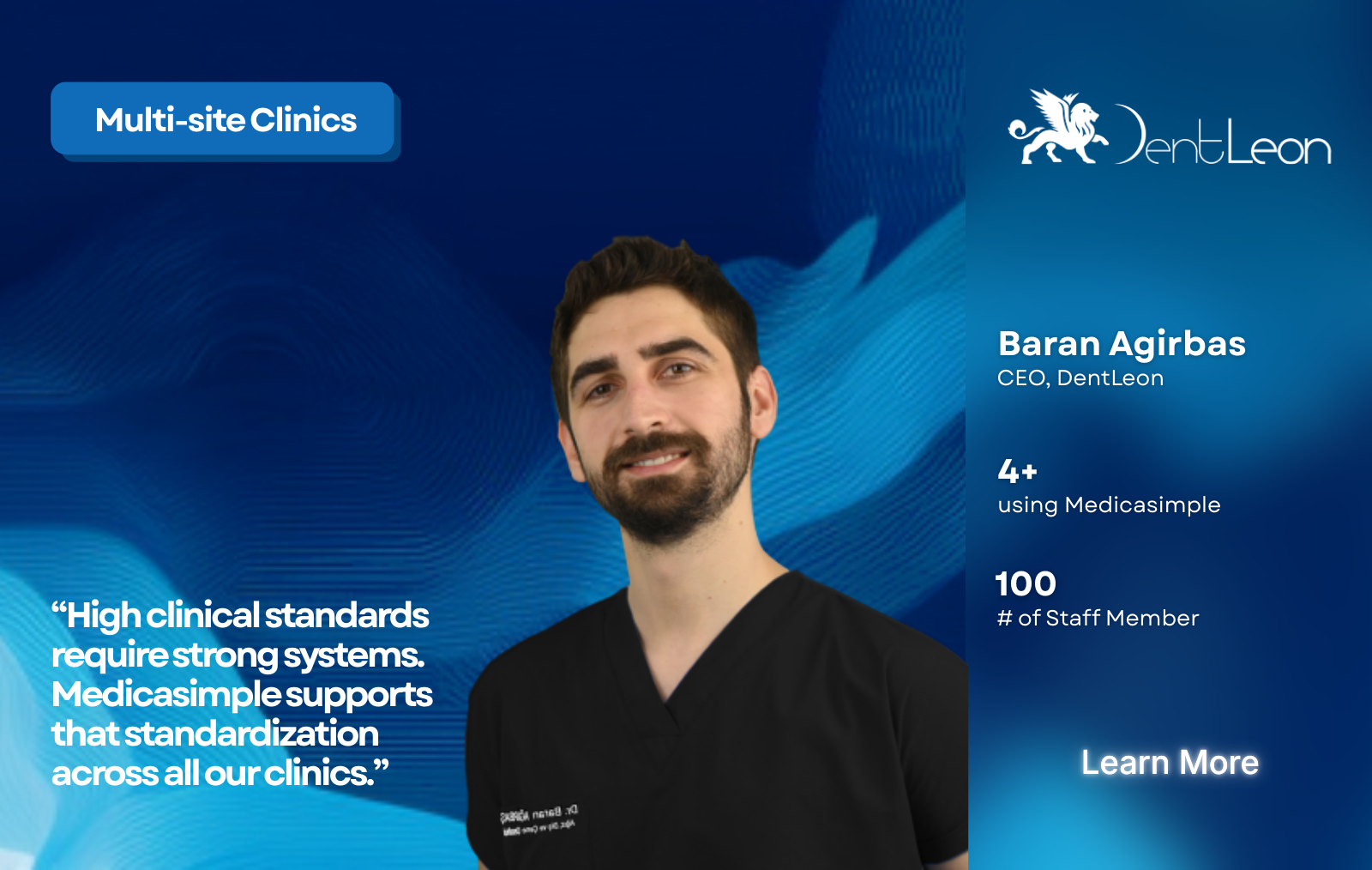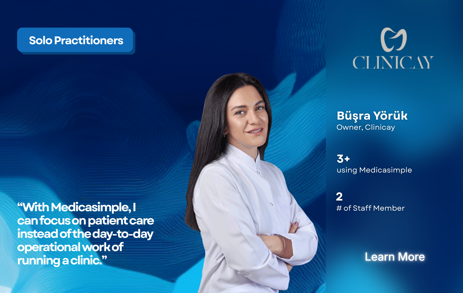 Medicasimple, hastalarına daha fazla zaman ayırmak isteyen özel muayenehaneler ve klinikler için kolay, etkili ve modern bir çözüme duyulan ihtiyacı karşılamak için yaratıldı. İnsan sağlığını hayatlarının hedefi haline getiren ekiplere yardımcı olmak, bizi her gün gelişmeye motive ediyor.